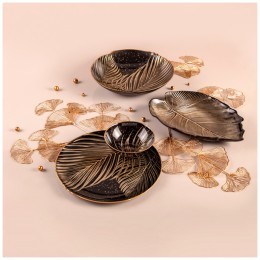 Блюдо для сервировки с деревянной ручкой коллекция "золотой мрамор" цвет: gray 39,5*17,8*2,5 см Lefard (412-130)