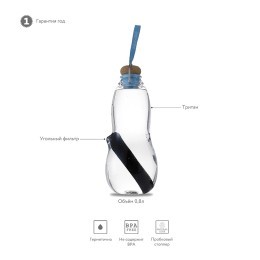 Экобутылка объемом 800 мл. из тритана с крышкой из натуральной пробки и угольным фильтром в комплекте.